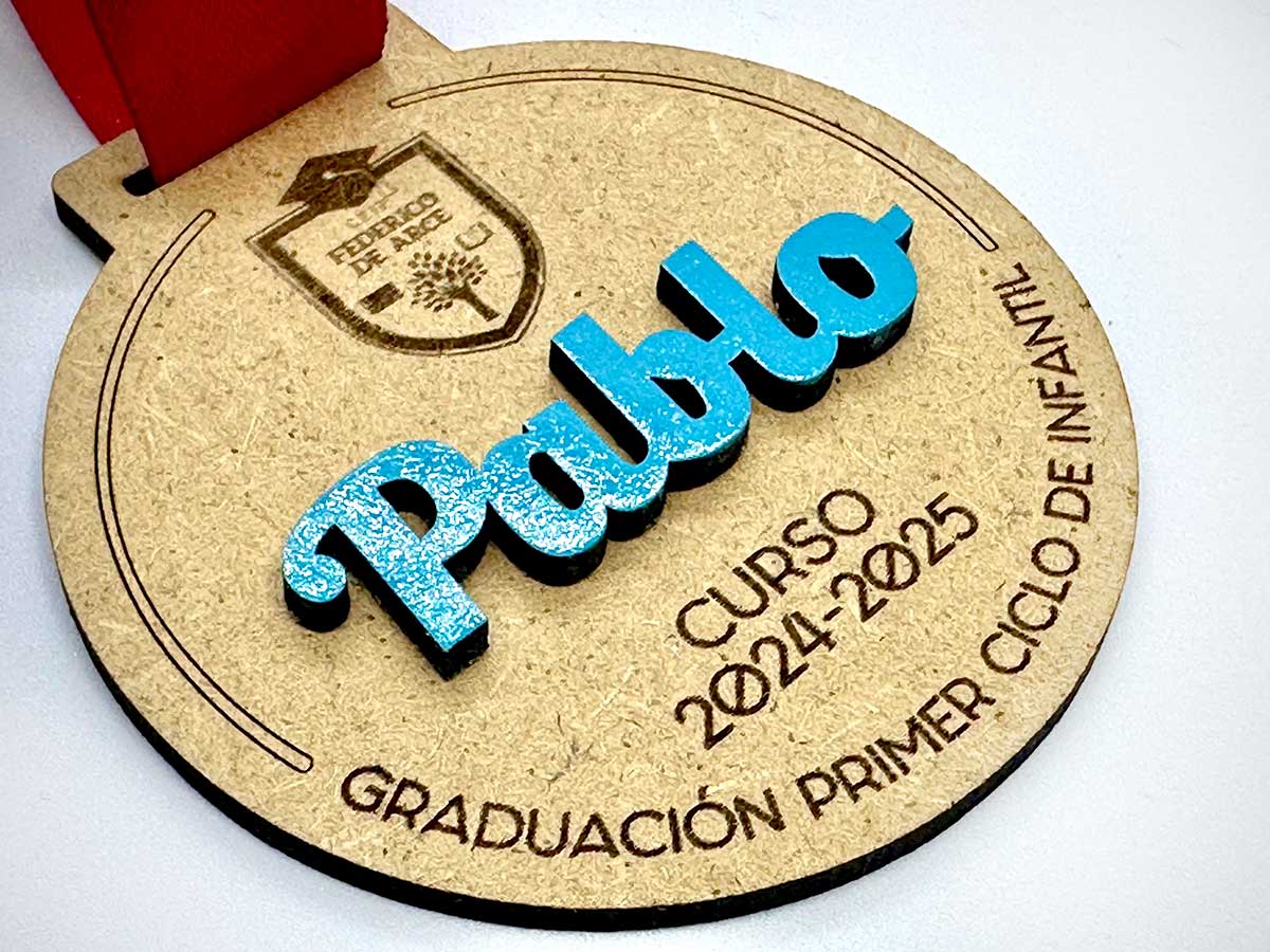 Nuestras medallas de madera personalizadas son el detalle ideal para celebrar el fin de etapa escolar.