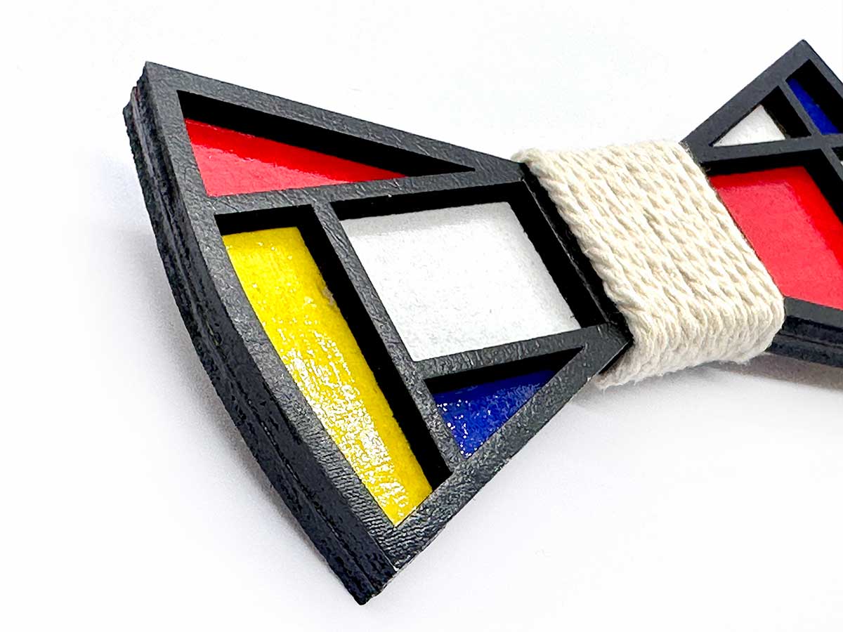 Nuestra pajarita de madera inspirada en Mondrian no es solo un complemento: es una pieza de diseño que mezcla elegancia, originalidad y pasión por el arte.