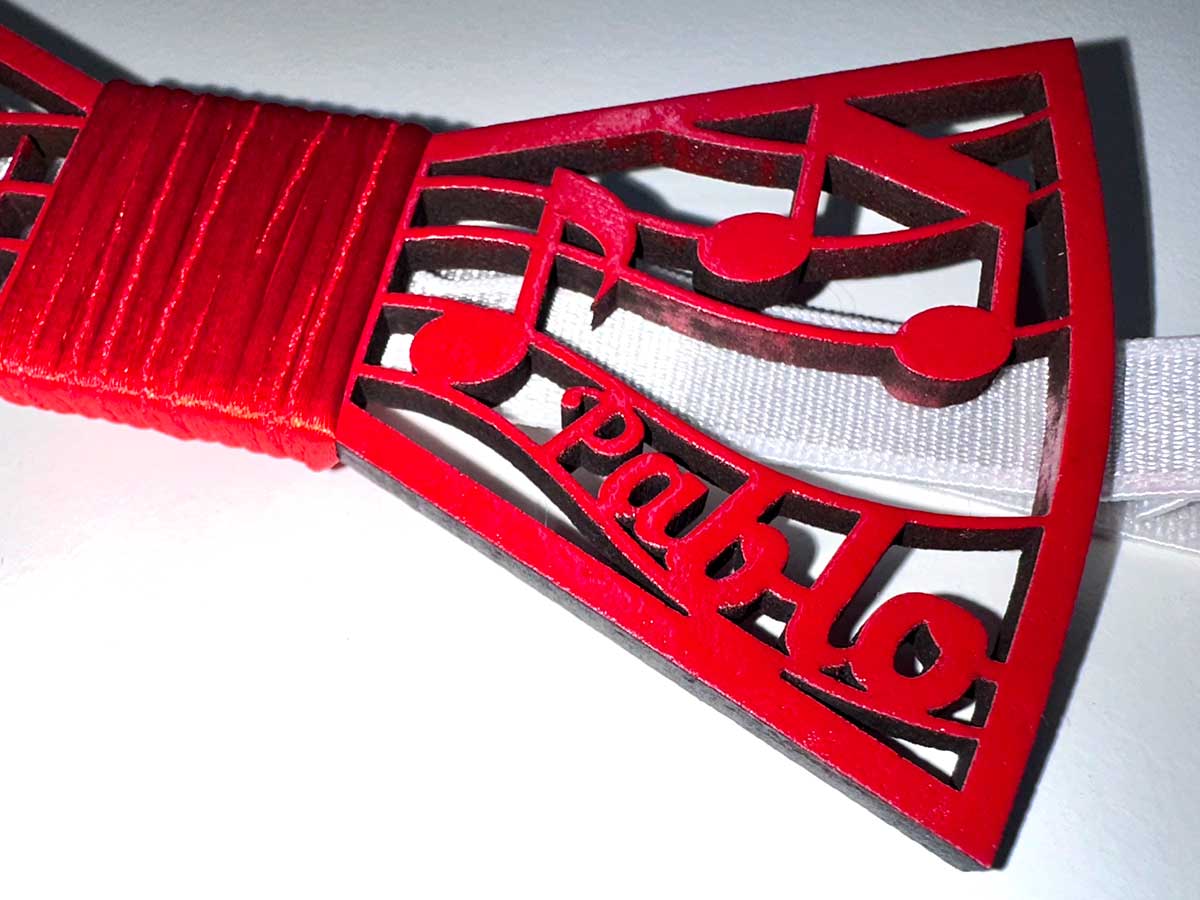 Nuestra pajarita de madera en color rojo con notas musicales no es solo un accesorio: es una declaración de ritmo, personalidad y pasión por la música. Su diseño vibrante y elegante convierte cualquier outfit en una auténtica armonía visual, ideal para músicos, amantes del arte sonoro o quienes disfrutan destacando con un toque original.